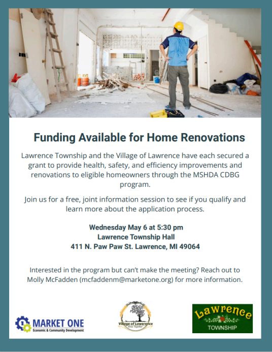 The Lawrence Township Board will hold a Special Meeting for the purpose of hosting a public information session regarding available grant funding for home renovations.